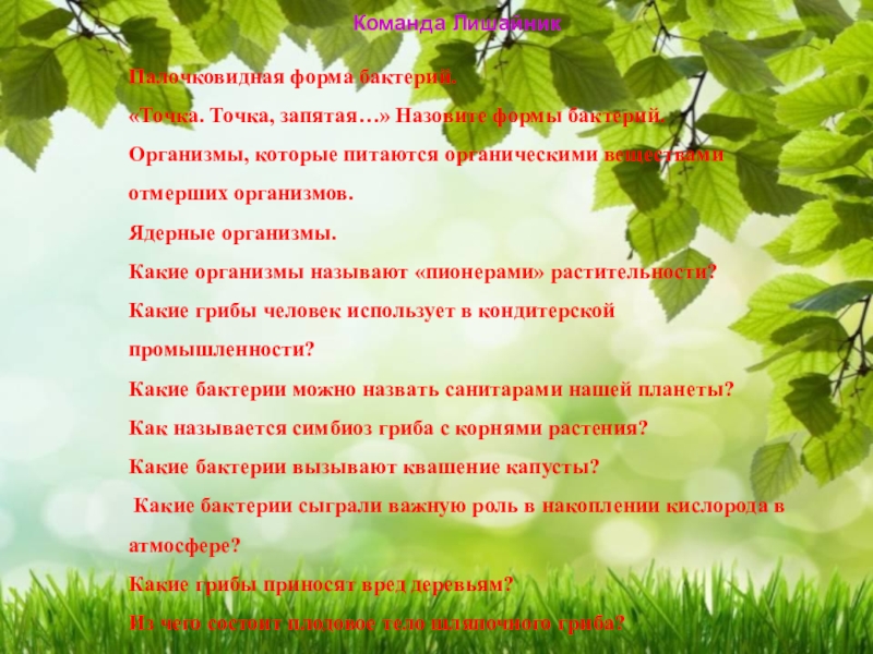 Слайд 6Команда Лишайник