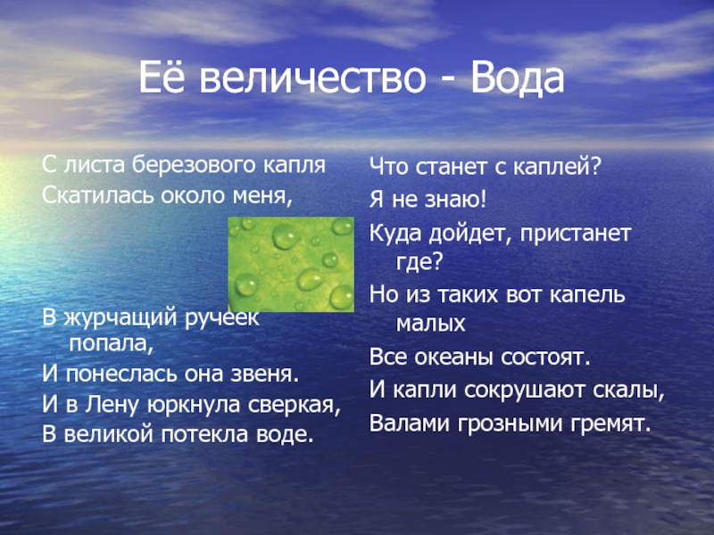 Чем чище вода – тем лучше экология и красивее родная природа;