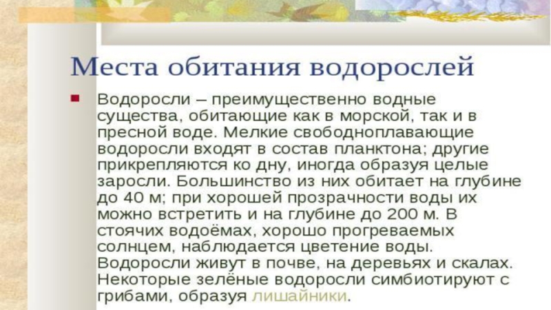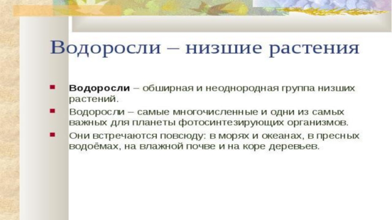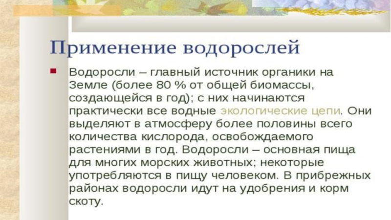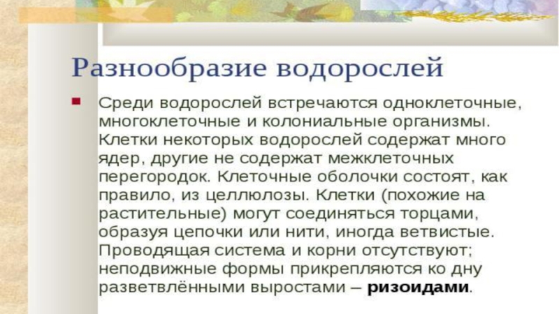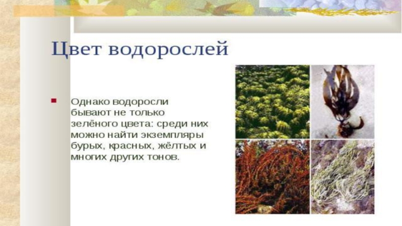 Презентация, доклад на тему Водоросли