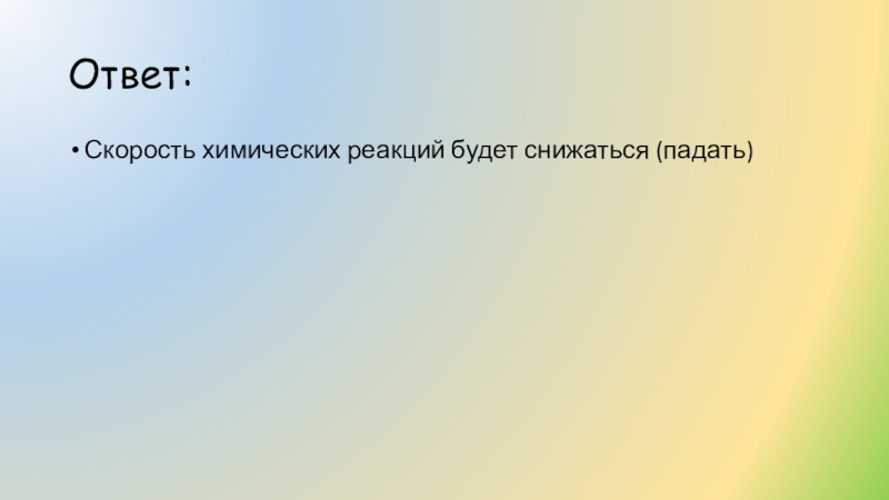 Ответ:Скорость химических реакций будет снижаться (падать)