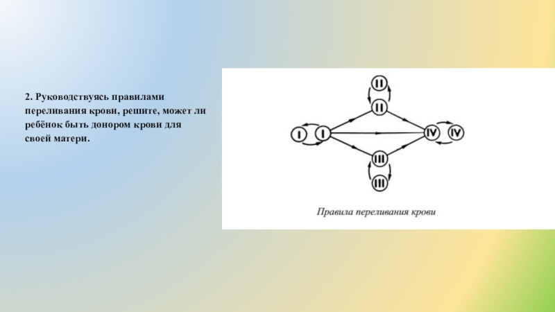 Слайд 262. Руководствуясь правилами переливания крови, решите, может ли ребёнок быть донором
