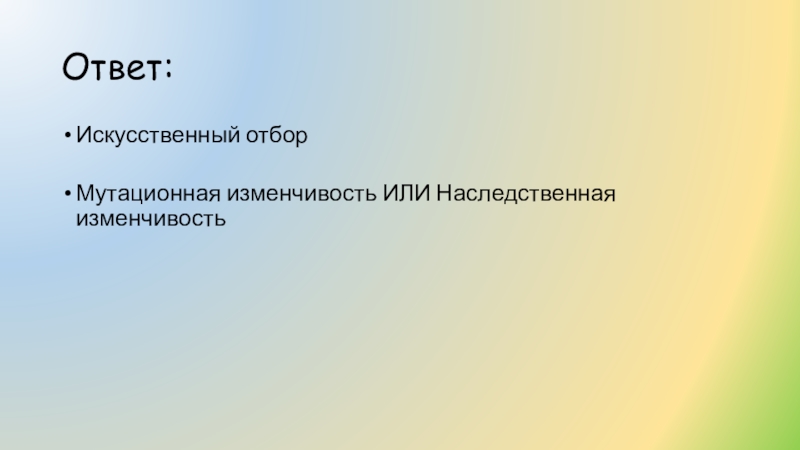 Ответ:Искусственный отбор Мутационная изменчивость ИЛИ Наследственная изменчивость