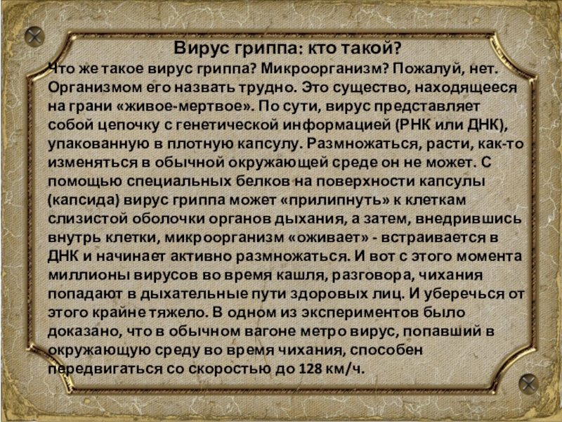 Что же такое вирус гриппа? Микроорганизм? Пожалуй, нет.