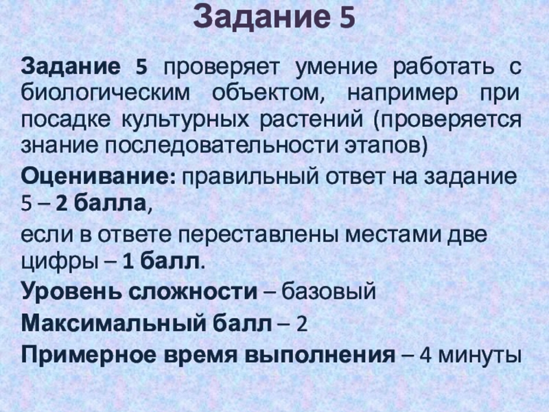 проверяет умение работать с биологическим объектом, например при посадке культурных растений.