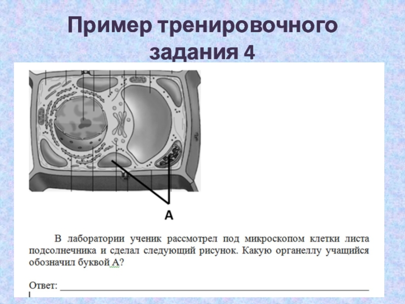 Задание 4 проверяет знание клеточных структур или знание устройства
