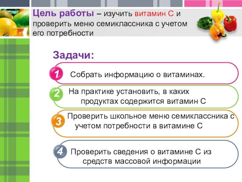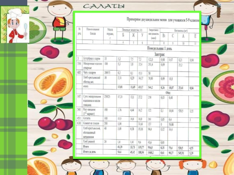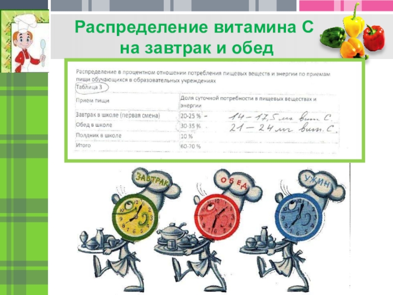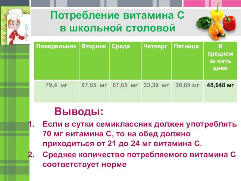 Проверить школьное меню семиклассника с учетом потребности в витамине С