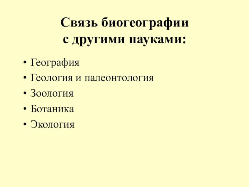 Слайд 21. Предмет и задачи биогеографии, связь с другими науками.