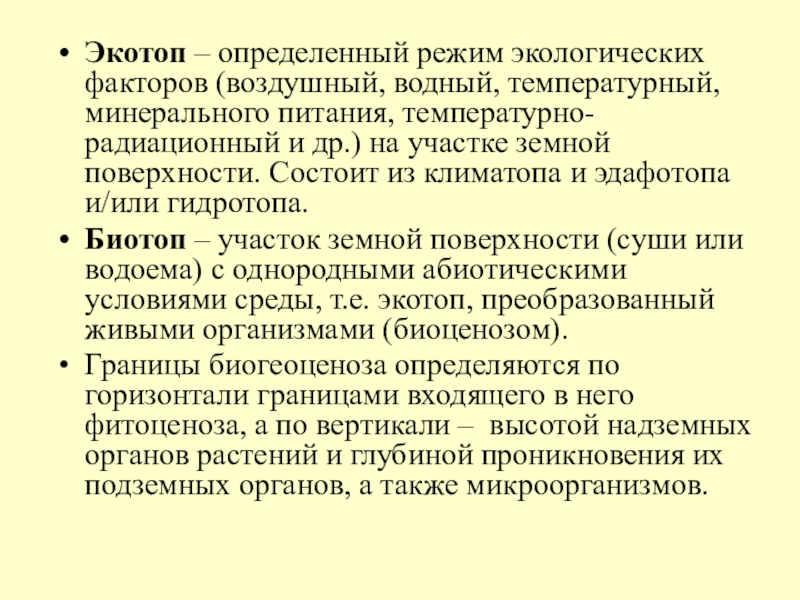 биогеоценоз, фитоценоз, биотоп, экотоп