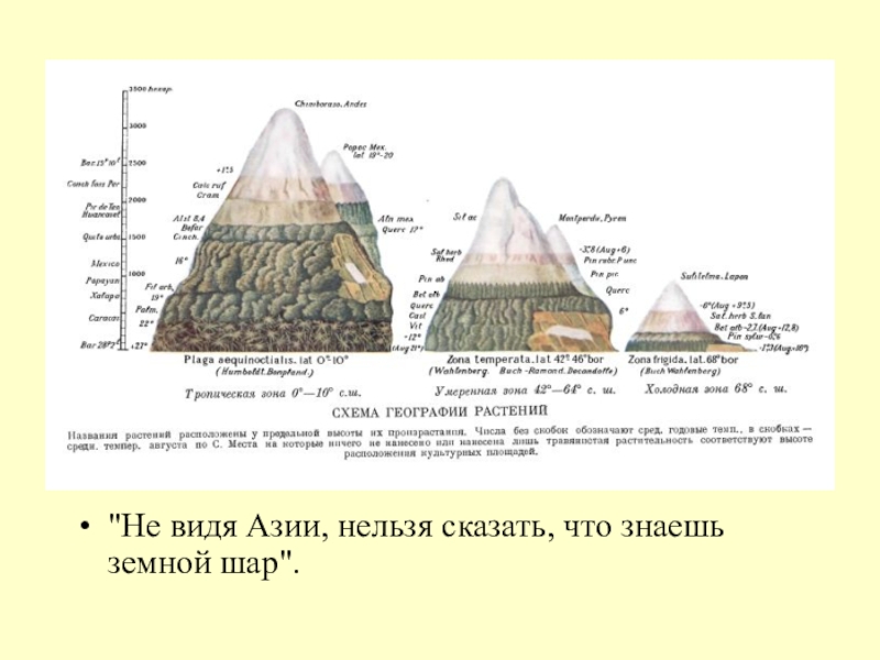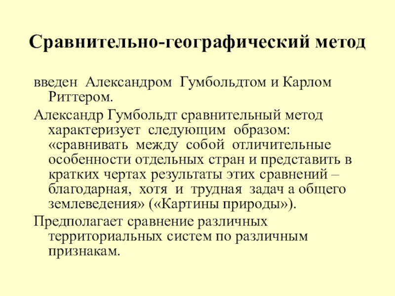 характеризует следующим образом: «сравнивать между собой отличительные особенности отдельных стран и представить в кратких чертах результаты этих сравнений – благодарная, хотя и трудная задач а общего землеведения» («Картины природы»).