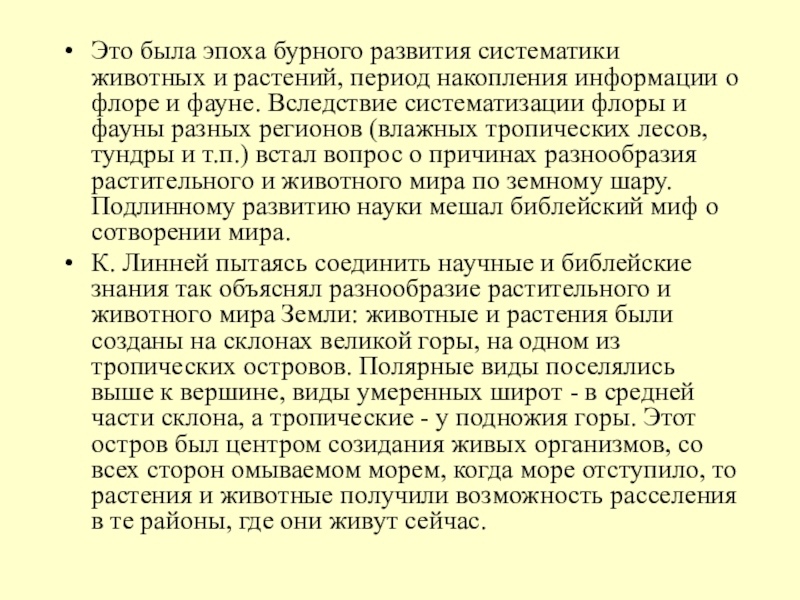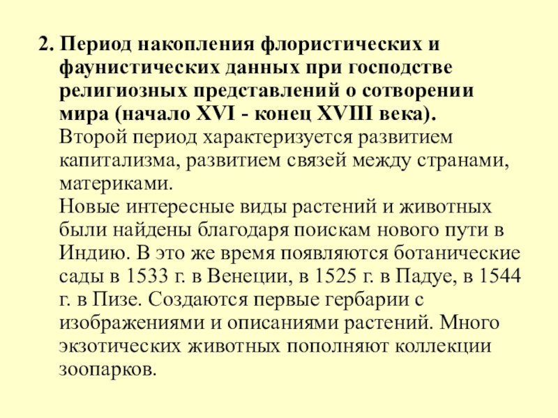 Слайд 202. Период накопления флористических и фаунистических данных при господстве религиозных представлений