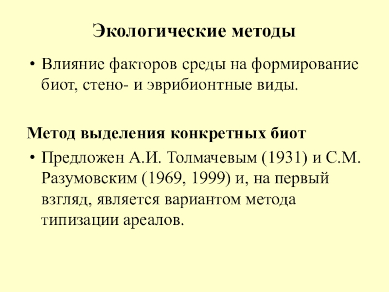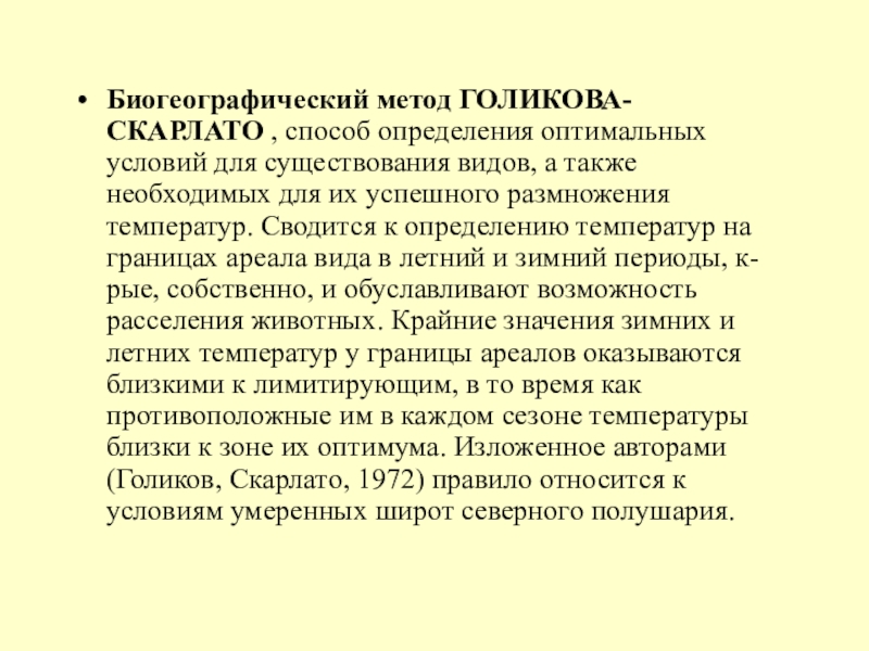 Слайд 75Биогеографический метод ГОЛИКОВА-СКАРЛАТО , способ определения оптимальных условий для существования видов,
