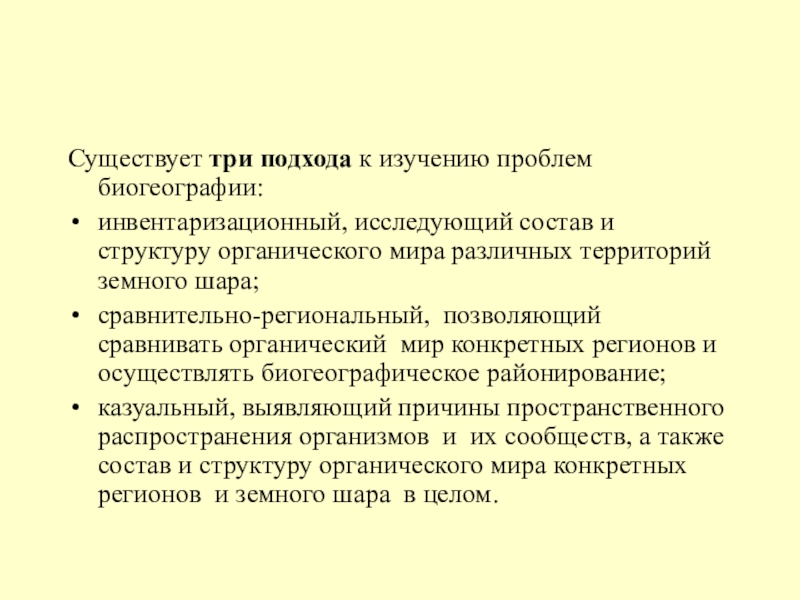 сравнительно-региональный, позволяющий сравнивать органический мир конкретных регионов и осуществлять биогеографическое районирование;