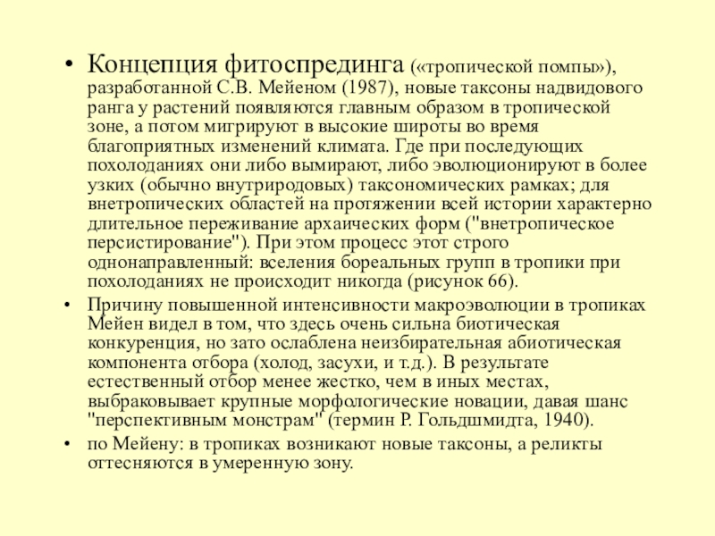 Слайд 72Концепция фитоспрединга («тропической помпы»), разработанной С.В. Мейеном (1987), новые таксоны надвидового