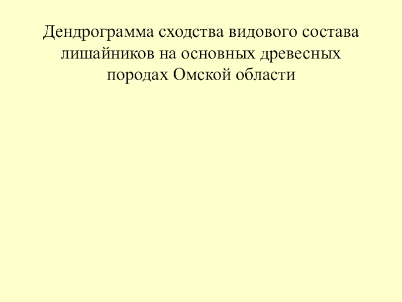Слайд 81Дендрограмма сходства видового состава лишайников на основных древесных породах Омской области