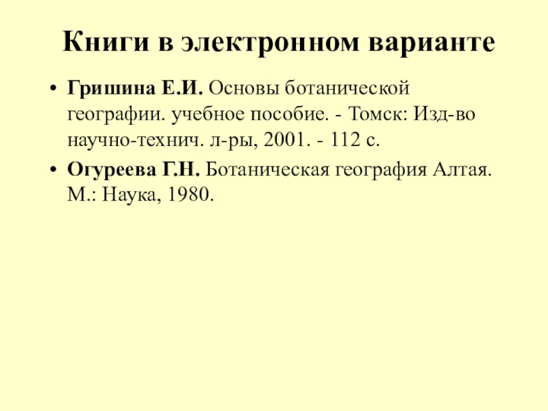 Гришина Е.И. Основы ботанической географии. учебное пособие. -
