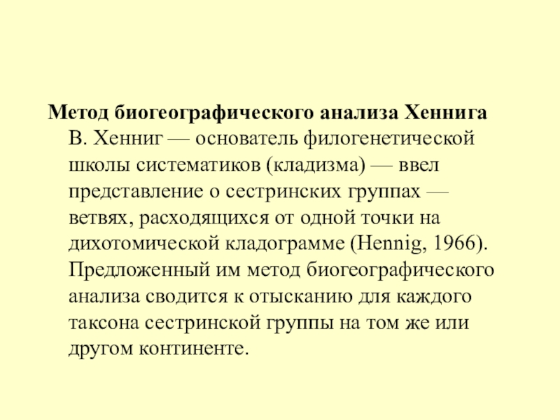 Метод биогеографического анализа Хеннига В. Хенниг — основатель филогенетической школы систематиков