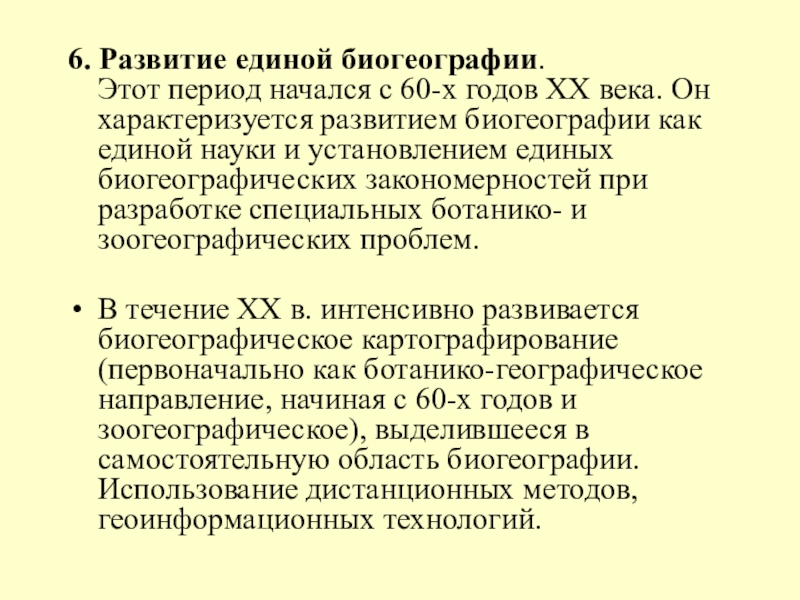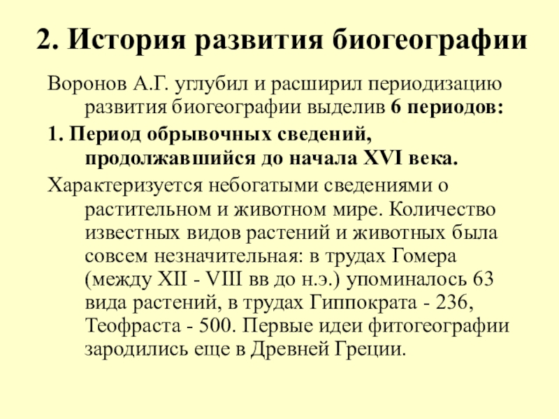 Слайд 17Воронов А.Г. углубил и расширил периодизацию развития биогеографии выделив 6 периодов:
