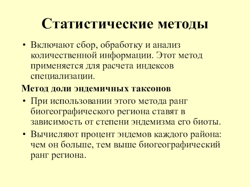 При использовании этого метода ранг биогеографического региона ставят в зависимость от степени эндемизма его биоты.