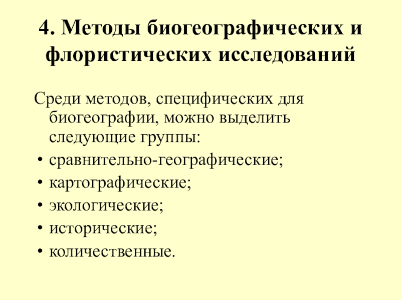 4) изучение влияния исторических причин на распространение сообществ и их компонентов;
