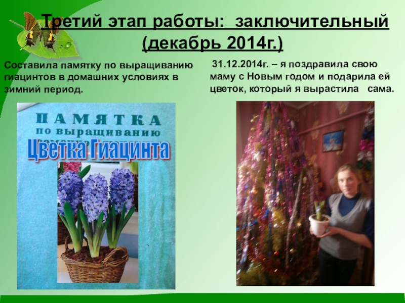 31.12.2014г. – я поздравила свою маму с Новым годом и подарила ей цветок, который я вырастила сама.