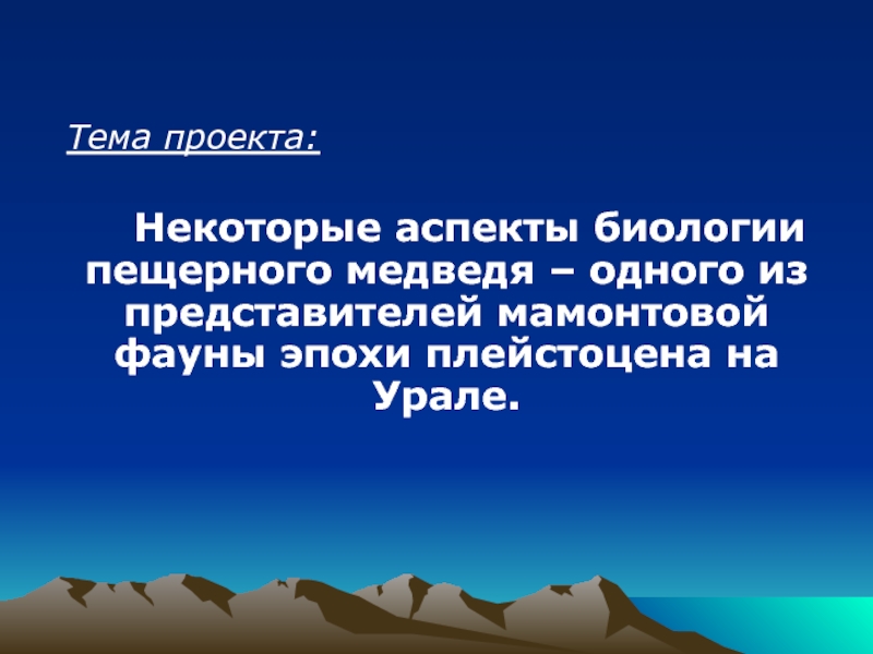 Особенности распространения пещерного медведя по территории Урала. Тип взаимоотношений древнего человека и пещерного медведя»