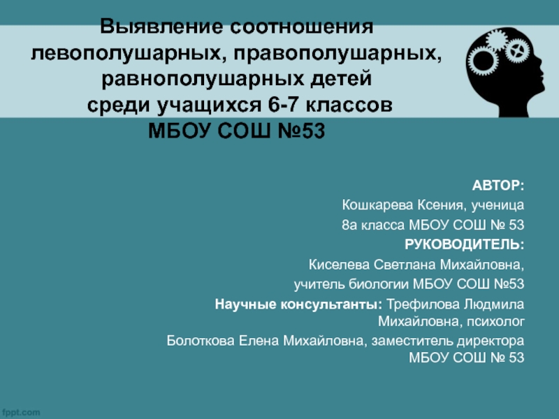 Научные консультанты: Трефилова Людмила Михайловна, психолог