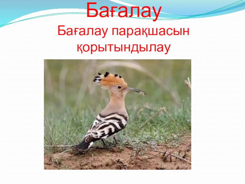 Слайд 39Бағалау Бағалау парақшасын қорытындылау