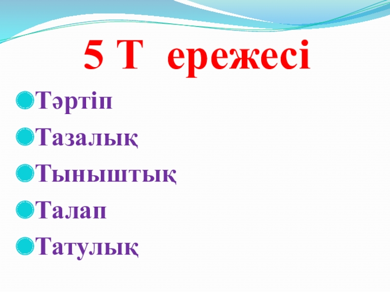 5 Т ережесіТәртіпТазалықТыныштықТалапТатулық