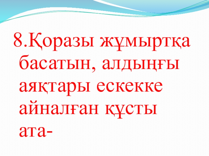 Слайд 218.Қоразы жұмыртқа басатын, алдыңғы аяқтары ескекке айналған құсты ата-