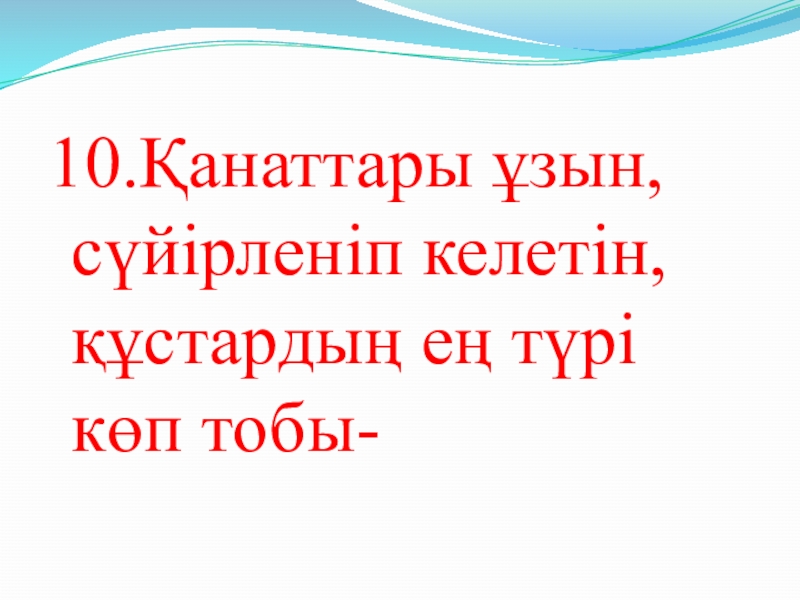 Слайд 2510.Қанаттары ұзын, сүйірленіп келетін, құстардың ең түрі көп тобы-