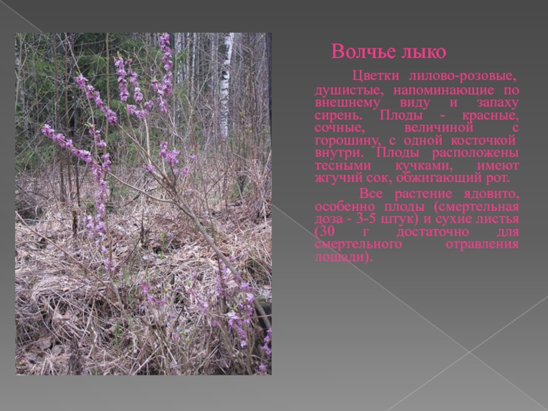 Волчье лыко   Цветки лилово-розовые, душистые, напоминающие по внешнему