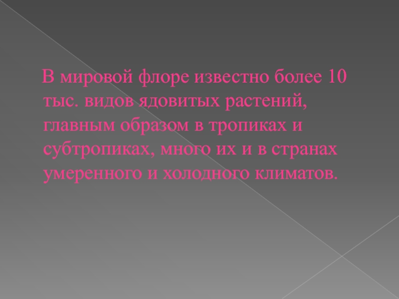 Слайд 3 В мировой флоре известно более 10 тыс. видов ядовитых