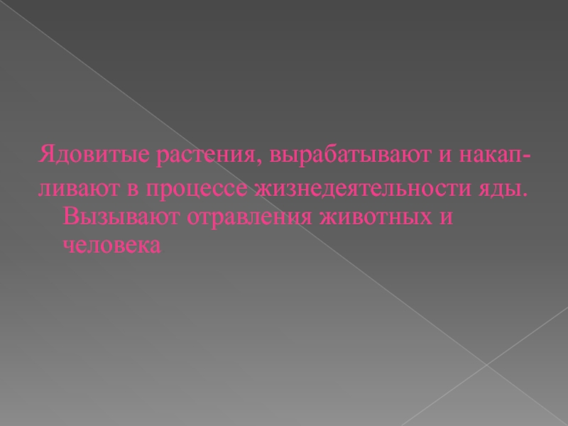 Ядовитые растения, вырабатывают и накап-ливают в процессе жизнедеятельности яды. Вызывают отравления животных и человека.