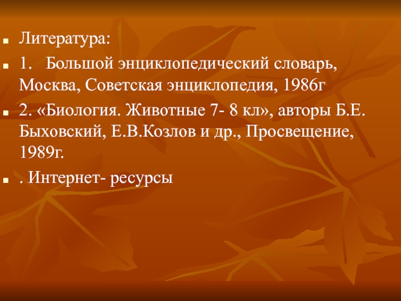 7- 8 кл», авторы Б.Е.Быховский, Е.В.Козлов и др., Просвещение, 1989г.