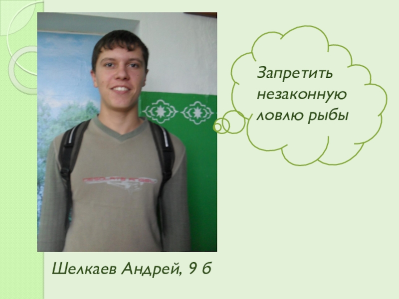 Шелкаев Андрей, 9 бЗапретить незаконную ловлю рыбы