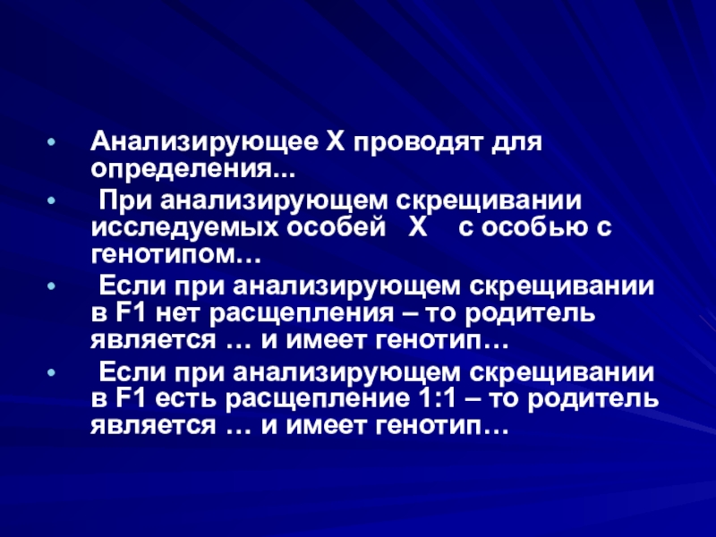 Анализирующее Х проводят для определения... При анализирующем скрещивании исследуемых особей  Х  с особью с генотипом…