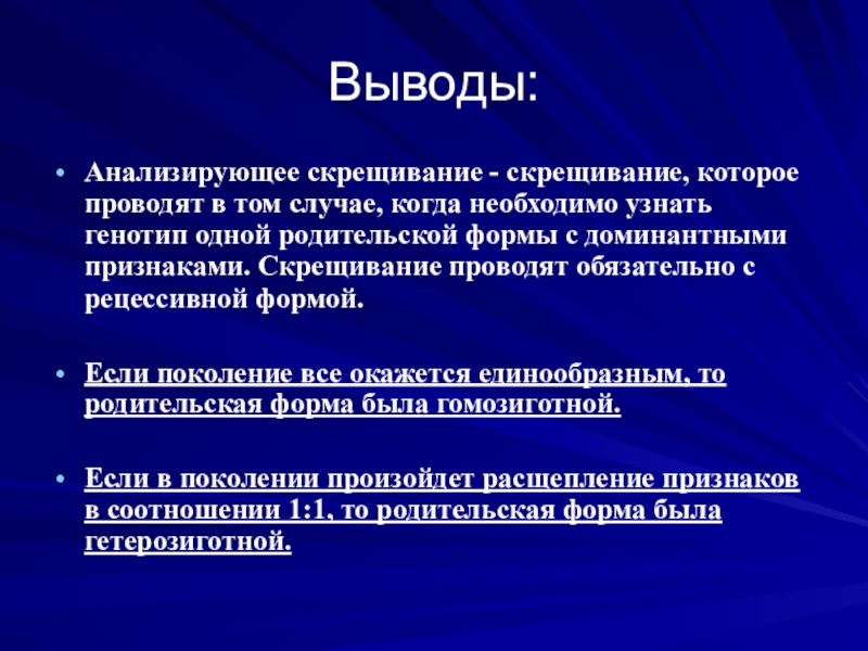 Анализирующее скрещивание - скрещивание, которое проводят в том случае, когда необходимо