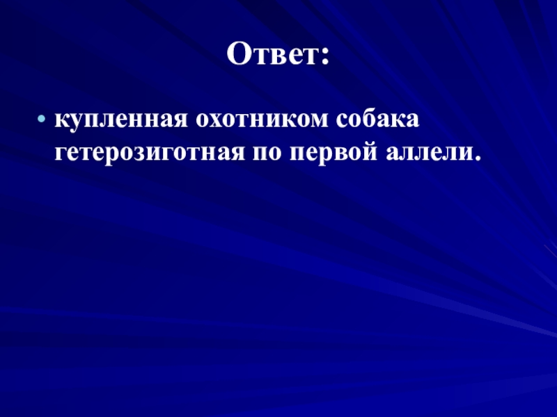 Ответ:купленная охотником собака гетерозиготная по первой аллели.