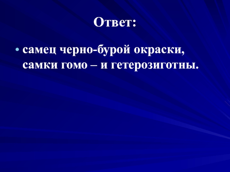Ответ:самец черно-бурой окраски, самки гомо – и гетерозиготны.