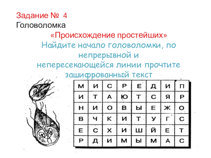 Задание №1      Головоломка«Паразитические простейшие»Найдите начало головоломки и по ходу часовой стрелки, пропуская