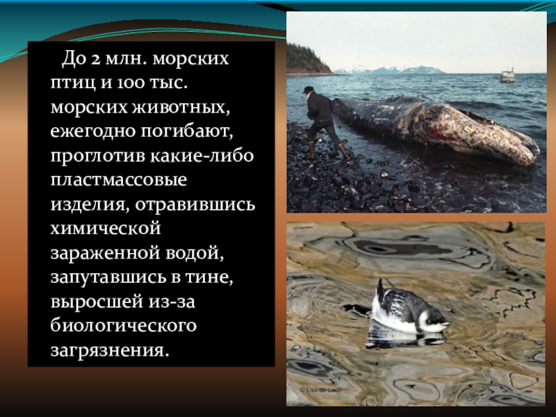 Слайд 9 До 2 млн. морских птиц и 100 тыс. морских животных, ежегодно