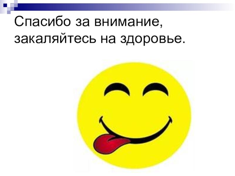 Слайд 25Спасибо за внимание, закаляйтесь на здоровье.