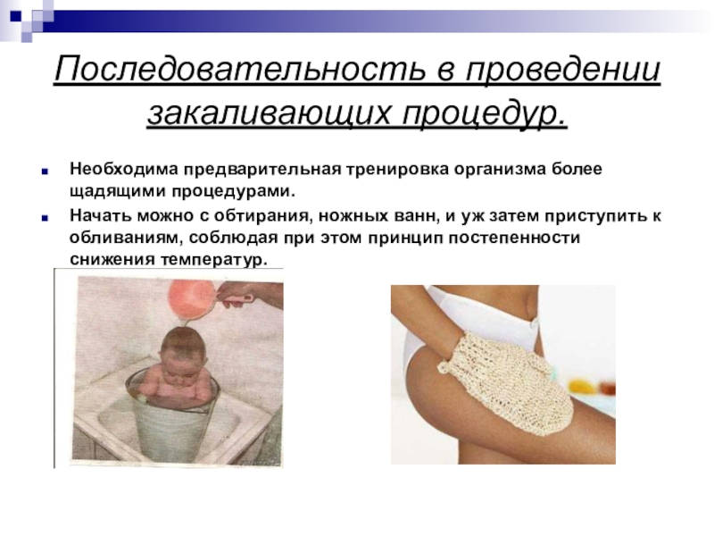Слайд 8Последовательность в проведении закаливающих процедур.