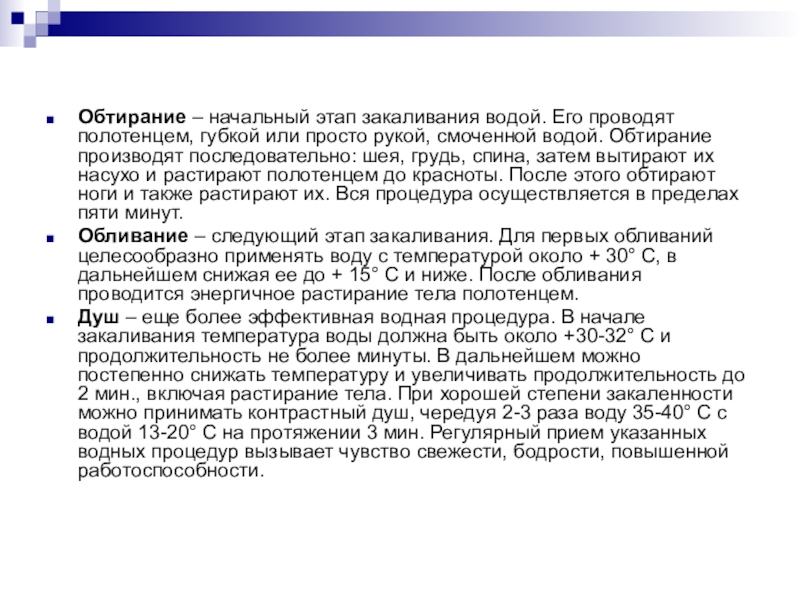 Обтирание – начальный этап закаливания водой. Его проводят полотенцем, губкой или