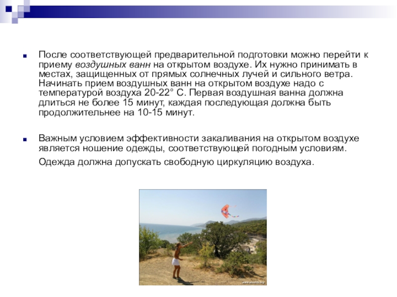 После соответствующей предварительной подготовки можно перейти к приему воздушных ванн на