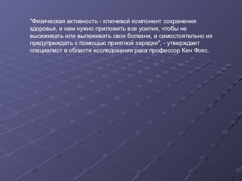 Слайд 9"Физическая активность - ключевой компонент сохранения здоровья, и нам нужно приложить