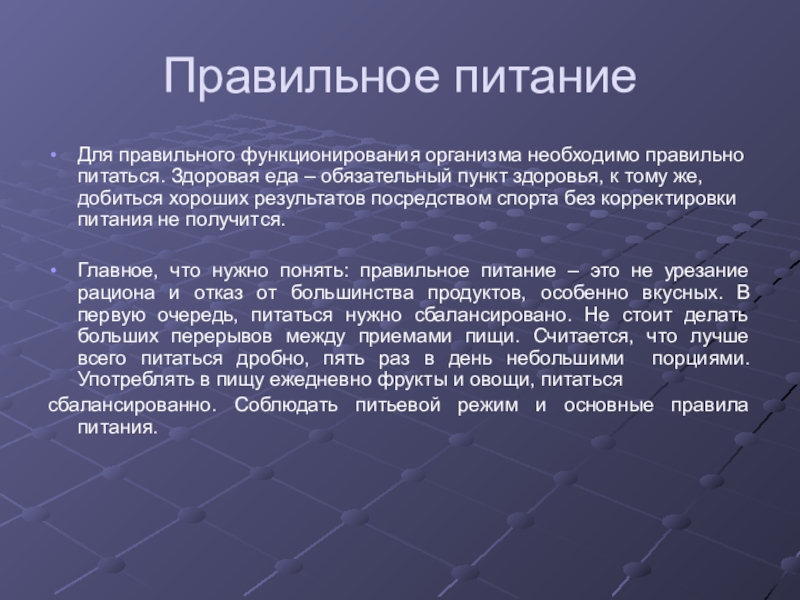 Для правильного функционирования организма необходимо правильно питаться. Здоровая еда –