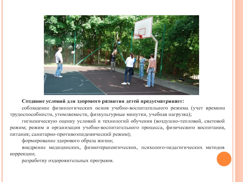 Слайд 6Создание условий для здорового развития детей предусматривает: