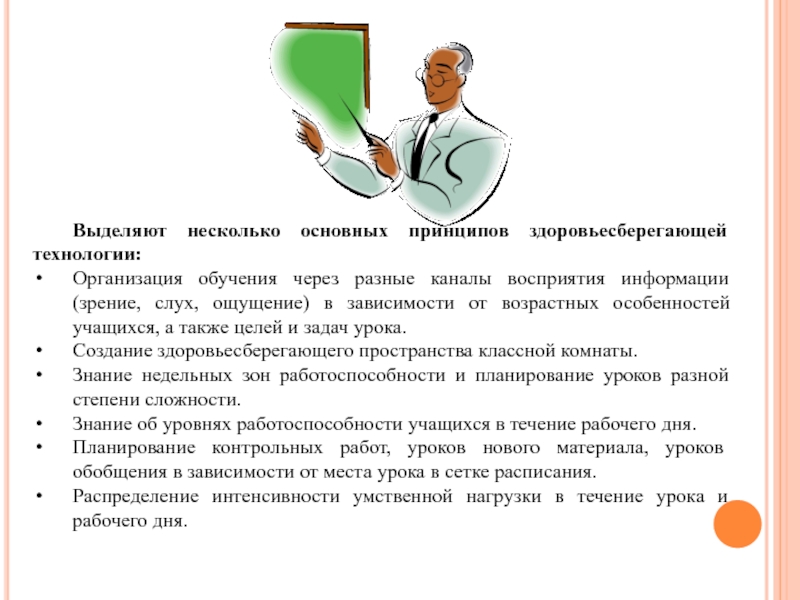 Слайд 7Выделяют несколько основных принципов здоровьесберегающей технологии: