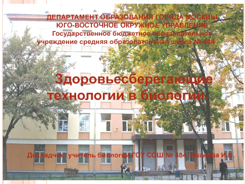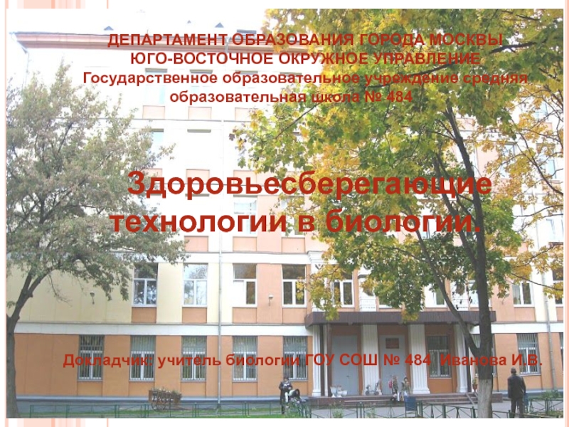 Докладчик: учитель биологии ГОУ СОШ № 484 Иванова